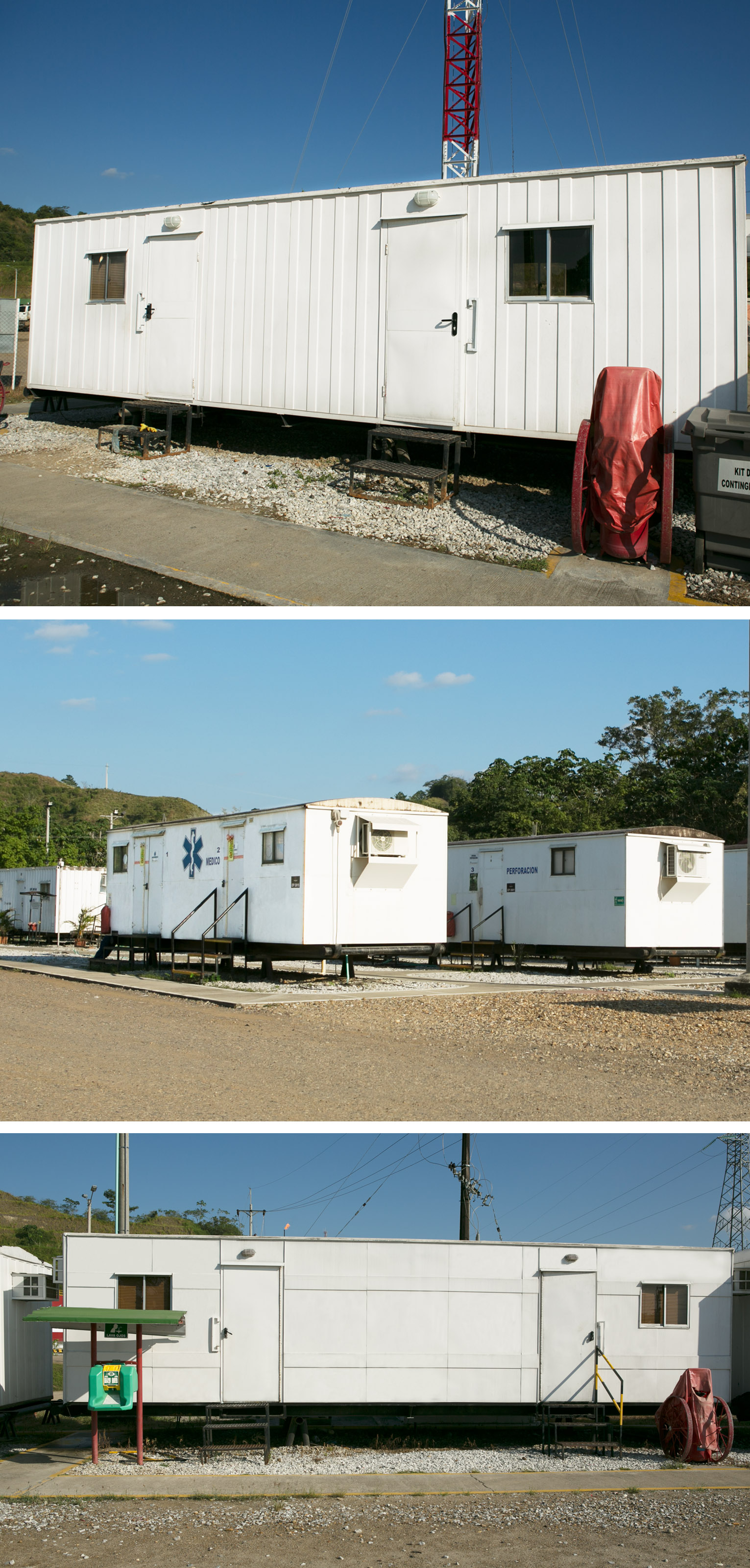 Dimensiones: 20 y 40 pies. Piso: según necesidad del cliente. Tipos: oficina, baterías de baños, cocinas, campamentos con camas, salas de juntas, laboratorios y bodegas.